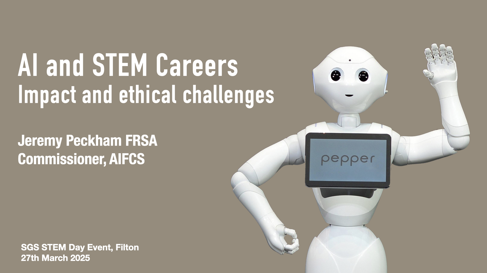 This keynote talk was given at the SGS Academy in Bristol to a group of students at a STEM careers open day. It covers what AI is and isn’t, applications of AI in STEM career areas and the ethical questions posed by AI in some of these work areas.
